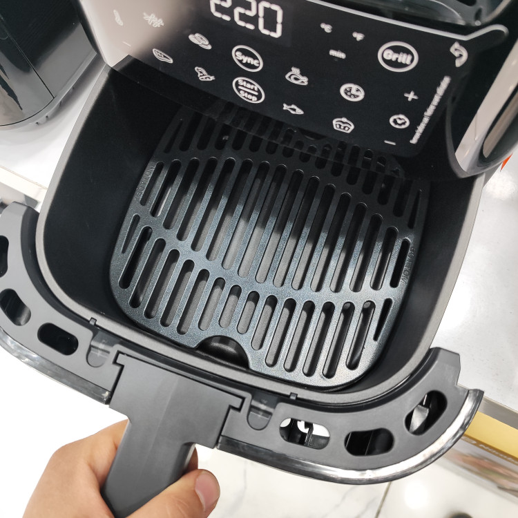 فناوری Extra Crisp: تعادل کامل دما و جریان هوای گرم برای ارائه نتایج ترد و طلایی بدون روغن اضافه، برنامه پخت: سیب زمینی سرخ شده – ناگت – مرغ سوخاری – پیتزا – گوشت – ماهی – سبزیجات – دسر، لوازم همراه: قطعه Flexcook برای تقسیم کردن سبد سرخ کن به دو نیمه / گریل توری آلومینیوم دایکاست.