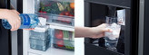 این محصول همانند سایر محصولات ارائه شده توسط هیتاچی از قابلیت های جدید و پیشرفته ای برخوردار شده و می تواند امور روزمره را برای شما از حالت طاقت فرسا به تفریح مبدل نماید. در ابتدا اولین موردی که ذهن مشتریان محترم را با خود درگیر خواهد کرد طراحی و ظاهر کلی یخچال فریزر هیتاچی ساید بای ساید مدل RSX700 است. به شیوه ای بسیار هنرمندانه می توانید کنار درب نمایشگر کاملا لمسی تعبیه شده را مشاهده کنید. از سوی دیگر رنگ های مشکی و نقره ای با روکش شیشه ای بازتاب دهنده جذابیت بی حد و حصری به یخچال HITACHI RSX700 بخشیده است. آبریز در سمت چپ دستگاه قرار دارد و رنگ زمینه آن با سایر قسمت ها متمایز شده است.