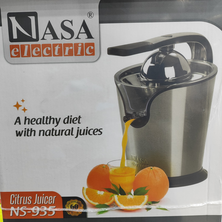 بدنه آب مرکبات گیری ناسا الکتریک NS-935 از جنس استیل کاور شده میباشد و از کیفیت بسیار مطلوبی برخوردار است. با توجه به مستعد بودن بدنه برای جذب اثر انگشت، پیشنهاد میشود که از تماس زیاد دست با بدنه خودداری کنید. دو سری مخروطی گرداننده در دو سایز کوچک و بزرگ به همراه این دستگاه عرضه شده است، که قابلیت استخراج آبِ میوههایی چون لیمو ترش و پرتقال و انار و ... را دارد. موتور این دستگاه با توان 200 وات قدرت کافی برای آب گیری کردن میوهها را دارد، همچنین برای محافظت بیشتر ترموفیوز محافظتی نیز تعبیه شده است. این سیستم در برابر جریان اضافه واکنش نشان داده و اجازه کار کردن به دستگاه را نمیدهد.