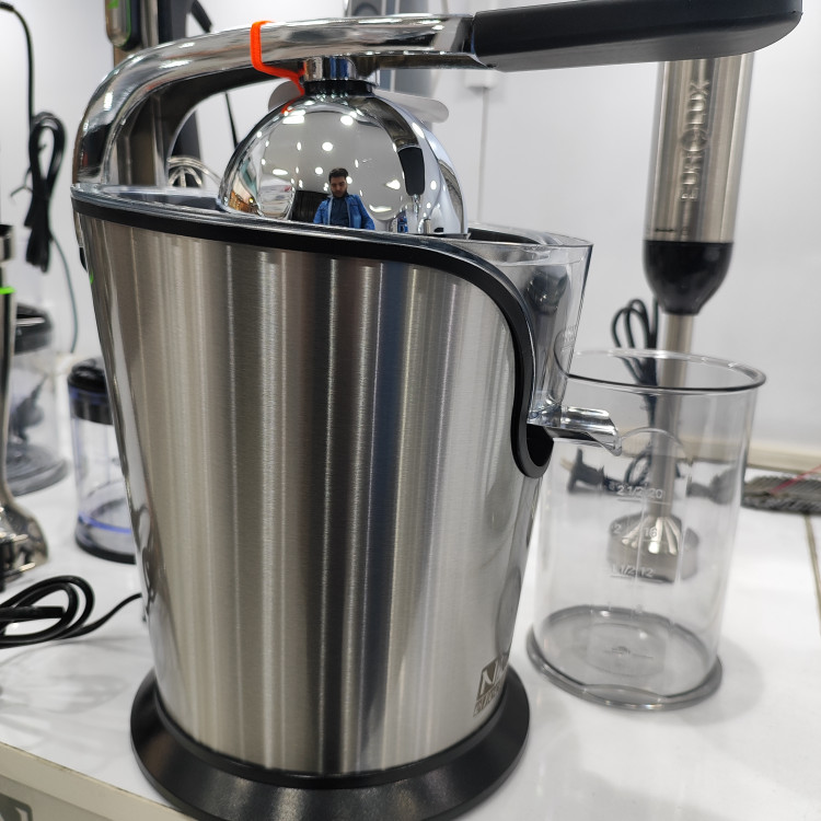 آب مرکبات گیری NS-935 محصولی با کیفیت از برند ناسا الکتریک است، که با رنگ نقرهای ارائه شده است. برای این آب مرکبات گیر یک اهرم فشاری در نظر گرفته شده، که کارکرد راحت و سادهای را برای کاربران به همراه دارد. دسته یا همان اهرم از جنس آلومنیوم با روکش کروم بوده و بر اثر استفاده طولانی مدت دچار تغییر رنگ و افت کیفیت نمیشود. کیفیت و جنس اهرم از اهمیت ویژهای برخوردار است، چرا که بیشترین کاربرد را در آب مرکبات گیری دارد و به ازای هر بار آبگیری کردن میوهها باید اهرم را به پایین هل داد. گفتنی است که نیازی به وارد آوردن فشار زیاد نیست، بلکه با یک فشار سطحی هم اهرم به سمت مخروطی رفته و کارش را شروع میکند.