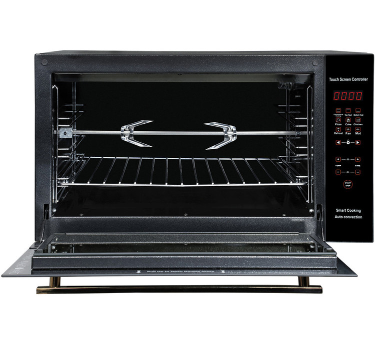 دو المنت در بالا و پایین فر و موتور جوجه گردان به جهت بریانی کردن همزمان و فن کانوکشن جهت پخت یکنواخت غذاست.