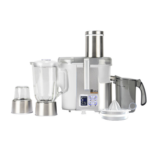 آبمیوه گیری ناسا الکتریک NS-945 محصولی کاربردی و چند کاره است، که از کاربردها و قابلیتهای زیادی پشتیبانی میکند. چند کاره بودن این دستگاه به عملکردهای آبمیوه گیر، آب مرکبات گیر، آسیاب و مخلوط کن اشاره دارد. تمام این قابلیتها در یک دستگاه جمع شدهاند و از آن محصولی همه کاره ساختهاند. این آبمیوه گیری با کیفیت دارای موتوری قدرتمند با حداکثر توان 1500 وات بوده، که امکان حداکثر بهرهوری از این محصول را فراهم آورده است. قابلیت تنظیم سرعت در 5 سطح مختلف در کنار عملکرد پالس PULSE نشان از کارآیی بالای دستگاه دارد، که متناسب با نوع و ساختار مواد اولیه میتوانید سطح سرعت را انتخاب نمایید.