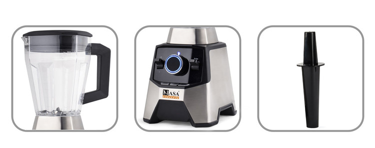 مخلوط کن ناسا الکتریک مدل NS-1965 یکی دیگر از محصولات ناسا الکتریک است، که به واسطه موتور قدرتمند جدا از مصارف خانگی برای استفاده حرفه ای نیز کاربرد دارد. حداکثر توان این موتور 2000 وات است و عملکرد فوقالعاده ای در تهیه انواع نوشیدنیها، دسر و اسموتیها و ... را دارد. بدنه مخلوط کن بصورت ترکیبی از استیل و پلاستیک ABS ساخته شده است. استیل ضد زنگ و پلاستیک با کیفیت ABS در ساختار این دستگاه نشان از کیفیت بالای مواد سازنده دارد، که از آن محصولی مقاوم در برابر خط و خراش و شستشوی مداوم ساخته است. پارچ مخلوط کن 1965 ناسا الکتریک از جنس پلاستیک Tritan بوده و دارای ظرفیت 2 لیتری میباشد، که برای تهیه اسموتی و آبمیوه برای جمعیتها و خانوادههای 8 نفره مناسب است.