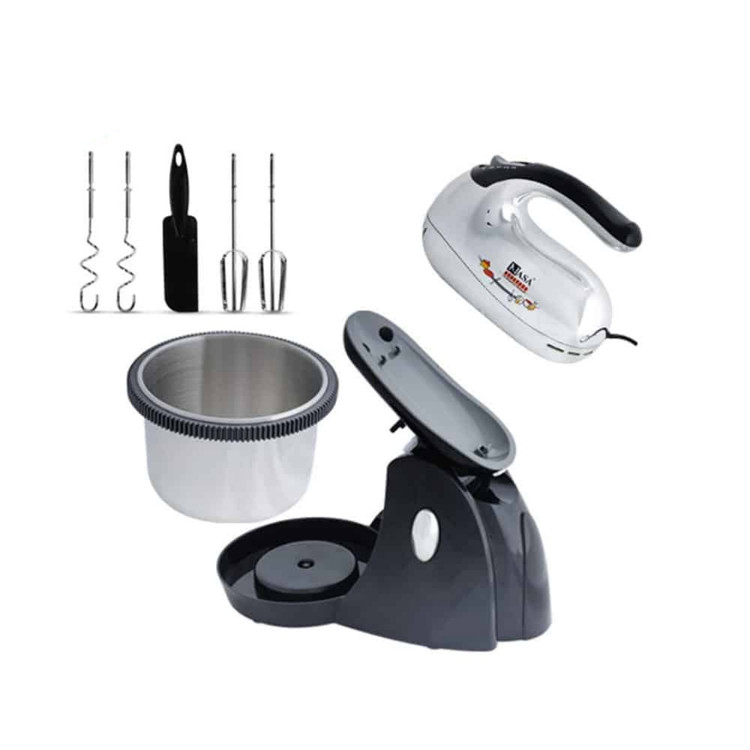 گفتنی است که به همراه همزن ناسا الکتریک NS-919 دو سری مختلف میلهی خمیرزن و میلهی همزن عرضه میشود که هر کدام کاربرد و کارآیی خاص خود را دارند. برای استفادهی بهتر و کاربردیتر از دستگاه همزن باید به نوع سری همزن و نوع مواد داخل کاسه دقت کنید. این همزن برقی دارای موتوری با توان مصرفی 350 وات است و قابلیت تنظیم سرعت در 5 سطح مختلف به همراه عملکرد توربو "TURBO" را دارد. سرعت انتخابی همزن بسته به نوع مواد غذایی داخل کاسه متفاوت میباشد و باید حتماً دفترچه راهنمای محصول عمل کنید. در کنار این قابلیت تنظیم سرعت ویژگی دیگری که برای این دستگاه در نظر گرفته شده است، عملکرد توربو "TURBO" نام دارد. عملکرد توربو در واقع با کمک کلید کشویی که بر روی دستهی همزن تعبیه شده است، انتخاب میشود. کلیدی که بر روی بدنهی دستگاه قرار گرفته برای آزادسازی کاسهی همزن به کار میرود و برای جدا کردن کاسه و تخلیهی آن کافی است که کلید را فشار دهید، تا کاسه از همزن جدا شود.