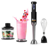 دسته تعبیه شده دارای طراحی آرگونومیکی بوده و به همین منظور کار کردن با آن راحت خواهد بود. قابلیت تنظیم سرعت برای این گوشت کوب در نظر گرفته شده است، که متناسب با نوع مواد غذایی میتوان یکی از سرعتها را تنظیم نمود. به همراه این گوشت کوب یک ظرف خردکن با تیغه دو پره ضد زنگ و میله مخصوص همزن و کاسهی خردکن با ظرفیت .05 لیتر و پارچ میکسر با ظرفیت 0.8 لیتر عرضه میشود.
