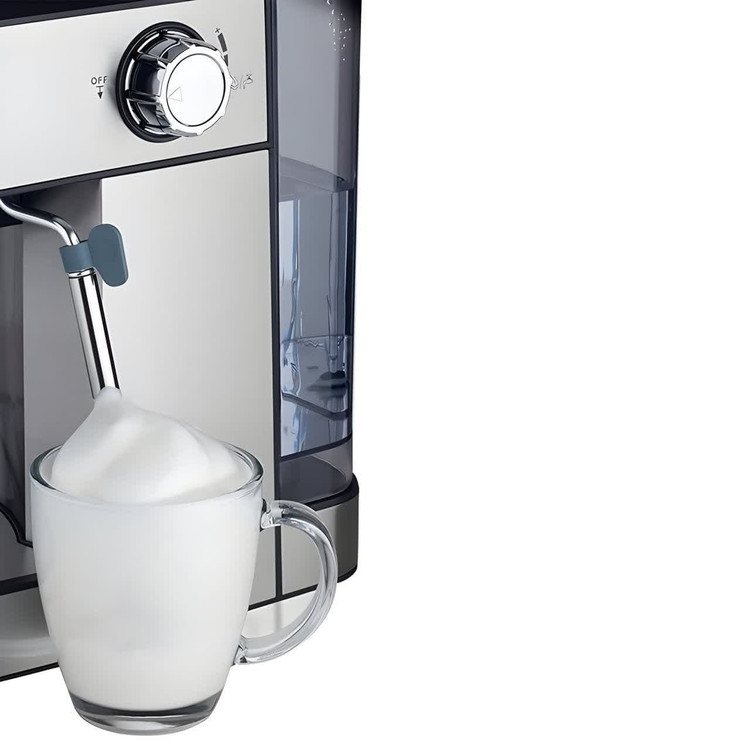 ارتفاع نازل قهوه اسپرسو ساز با ارتفاع فنجان قهوه متناسب تولید شده و در زیر ان سینی چکه گیر برای ذخیره کردن مایعات چکه شده بعد از عصاره گیری قرار دارد و به راحتی قابل جدا شدن و شستوشو است. در قسمت جلوی دستگاه یک عقربه فشار سنج قرار گرفته و در بالای ان پنل لمسی برای تنظیم کردن و روشن و خاموش شدن دستگاه وجود دارد که ظاهری زیبا به اسپرسو ساز بخشیده است، همچنین در کنار بدنه دستگاه یک ولوم هم برای تنظیم بخار وجود دارد که با ان غلظت شیر را هم می توانید تنظیم کنید و نازل بخار دستگاه جوری طراحی شده که قابل چرخش است. در بالای دستگاه گرمکن فنجان قرار دارد که می توانید قبل از اینکه عصاره گیری را شروع کنید، فنجان خود را گرم کنید یا اگر عصاره گیری تموم شد و کاری داشتید فنجان را بالای دستگاه بگذارید تا موقعی که می خواهید میل کنید، ان را گرم نگه دارد.