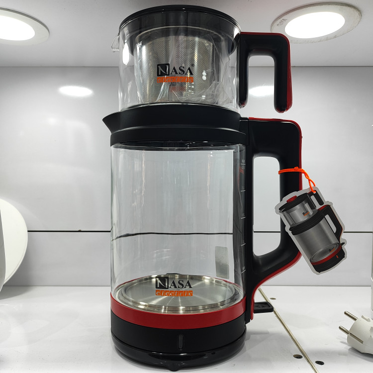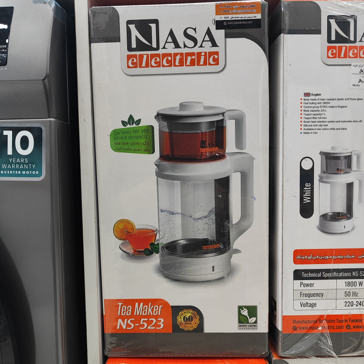 کتری و قوری در این چای ساز از جنس شیشه برو سیلیکاتی هستند، که در مقابل حرارت و شوک حرارتی مقاومت بالایی دارند. چای ساز ناسا الکتریک NS-523 قابلیت استفاده بصورت بی سیم را نیز دارد. دستهای که برای کتری در نظر گرفته شده از طراحی آرگونومیکی برخوردار است و از این رو به راحتی میتوان از آن استفاده کرد. ظرفیت کتری در این دستگاه 2 لیتر و ظرفیت قوری 1 لیتر میباشد و این ظرفیت بالا از چای ساز 523 گزینهای ایدهآل برای جمعیتهای متوسط و بزرگ ساخته است. صافی تعبیه شده برای قوری از جنس استیل ضد زنگ 304 بوده و از کیفیت بسیار بالایی بهره میبرد. میزان صدای دستگاه تنها 1.6 دسی بل است، که نشان از کارکرد بی صدای آن دارد.