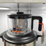 پایهای که برای سماور طراحی شده از جنس سیلیکون ضد لغزش بوده و علاوه بر برقراری تعادل و جلوگیری از افتادن، مانع حرکت و تکان خوردن آن میشود. نشانگر میزان آبی که بر روی بدنه مخزن آب طراحی شده، میزان اب داخل کتری را به شما مشان میدهد و شما را از وضعیت میزان آب با خبر میسازد، تا در صورت نیاز کتری را پر کنید. البته نگران خالی شدن آب سماور نباشید؛ چرا که این سماور سیستم ایمنی خاموشی خودکار دارد و مانع از بروز حوادث احتمالی میشود.